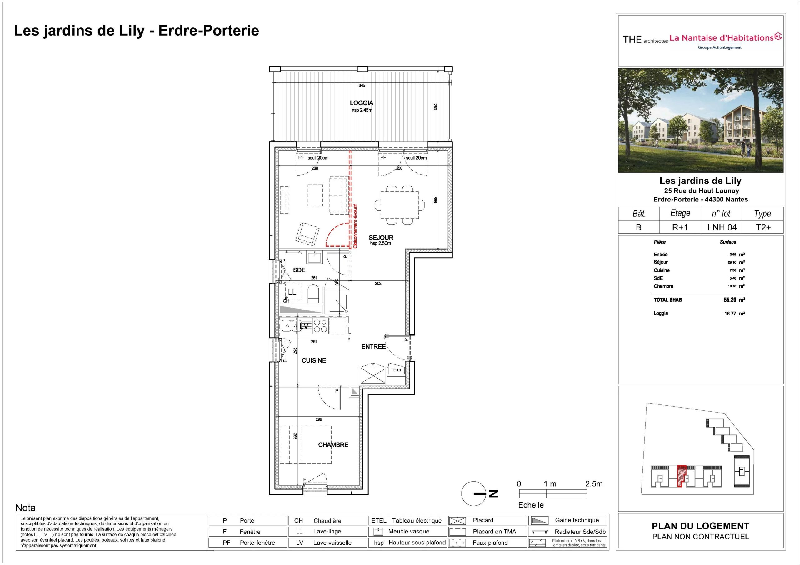 A louer, 1 appartement neuf de type 2, avec une surface habitable de 55.20 m² au cœur d’une résidence située 25 Rue du Haut Launay 44300 Nantes.