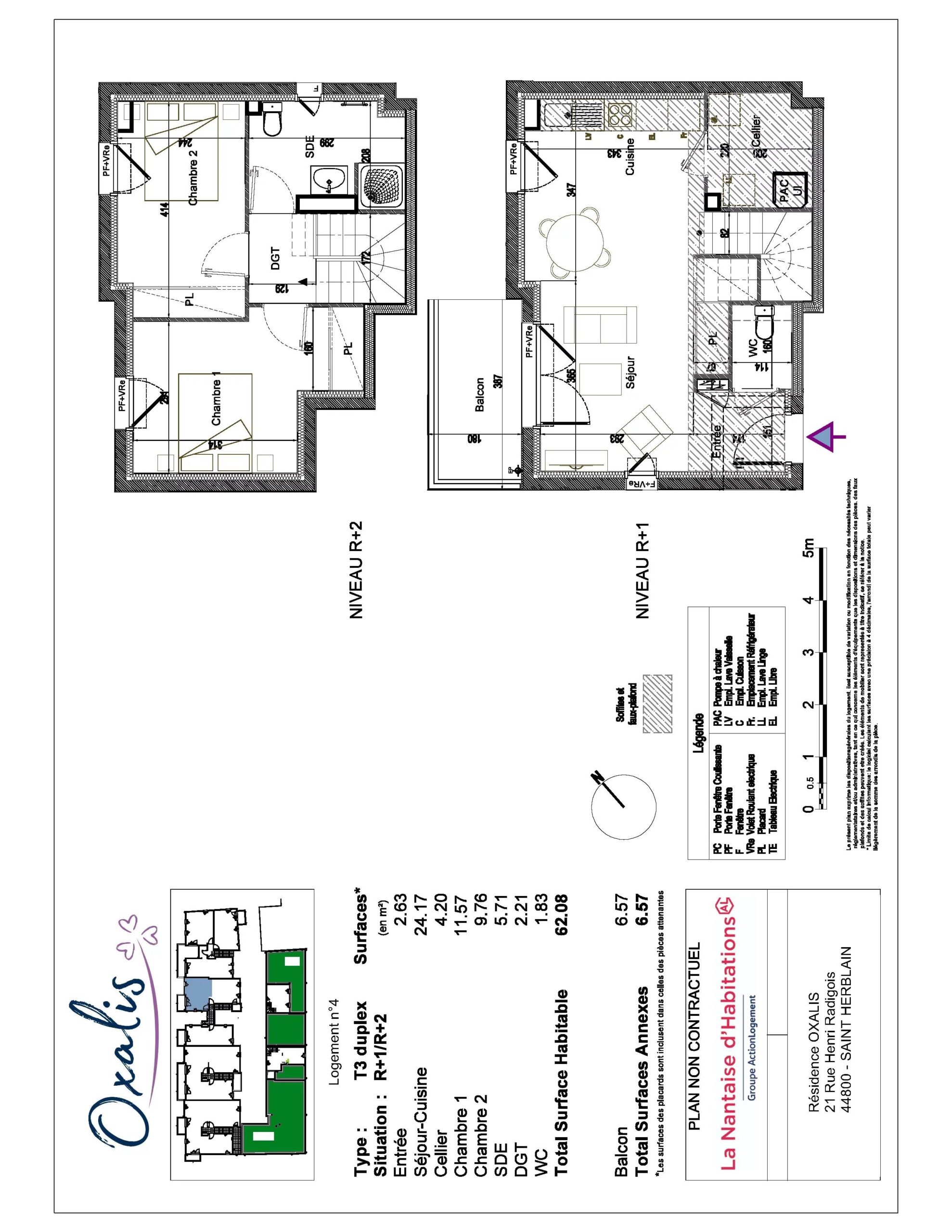 A louer, 1 appartement neuf de type 3, avec une surface habitable de 62.08 m² au cœur d’une résidence située 21 rue Henri RADIGOIS à Saint Herblain.